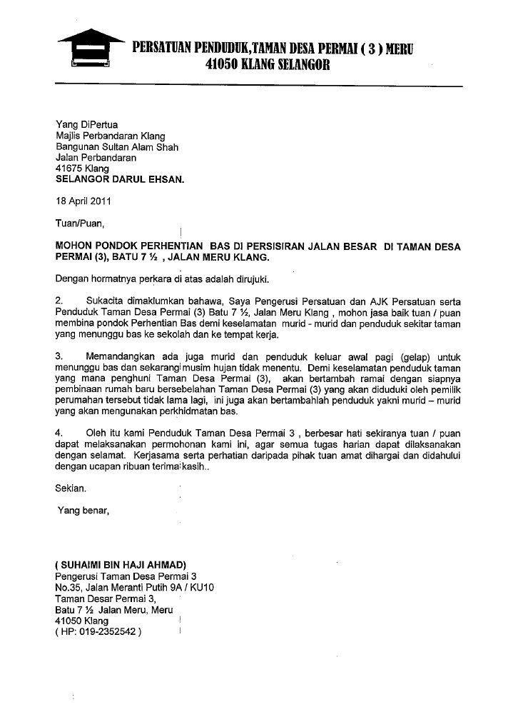Encik Ibrahim bin Jadi 144 Rumah Rakyat Sungai Layang 71300 Rembau NS. Maklumat mengenai pertubuhan persatuan 1nama pertubuhan persatuan. Contoh surat mohon sumbangan dari yb surat rasmi mohon peruntukan dan.